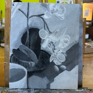 Looking at all the things that I have learned, I think I have grown the most in my use of perspective when creating compositions. In my self portrait perspective was one of the most important parts for conveying what I wanted through my piece, and it forced me to think a lot more about where I wanted the viewer to be looking at me from. In the end by forcing me to think about it so much in that piece, I also used it in my still life as another part of my composition. While I had trouble actually painting it, from the beginning I knew how I wanted to use it which created a much stronger composition.